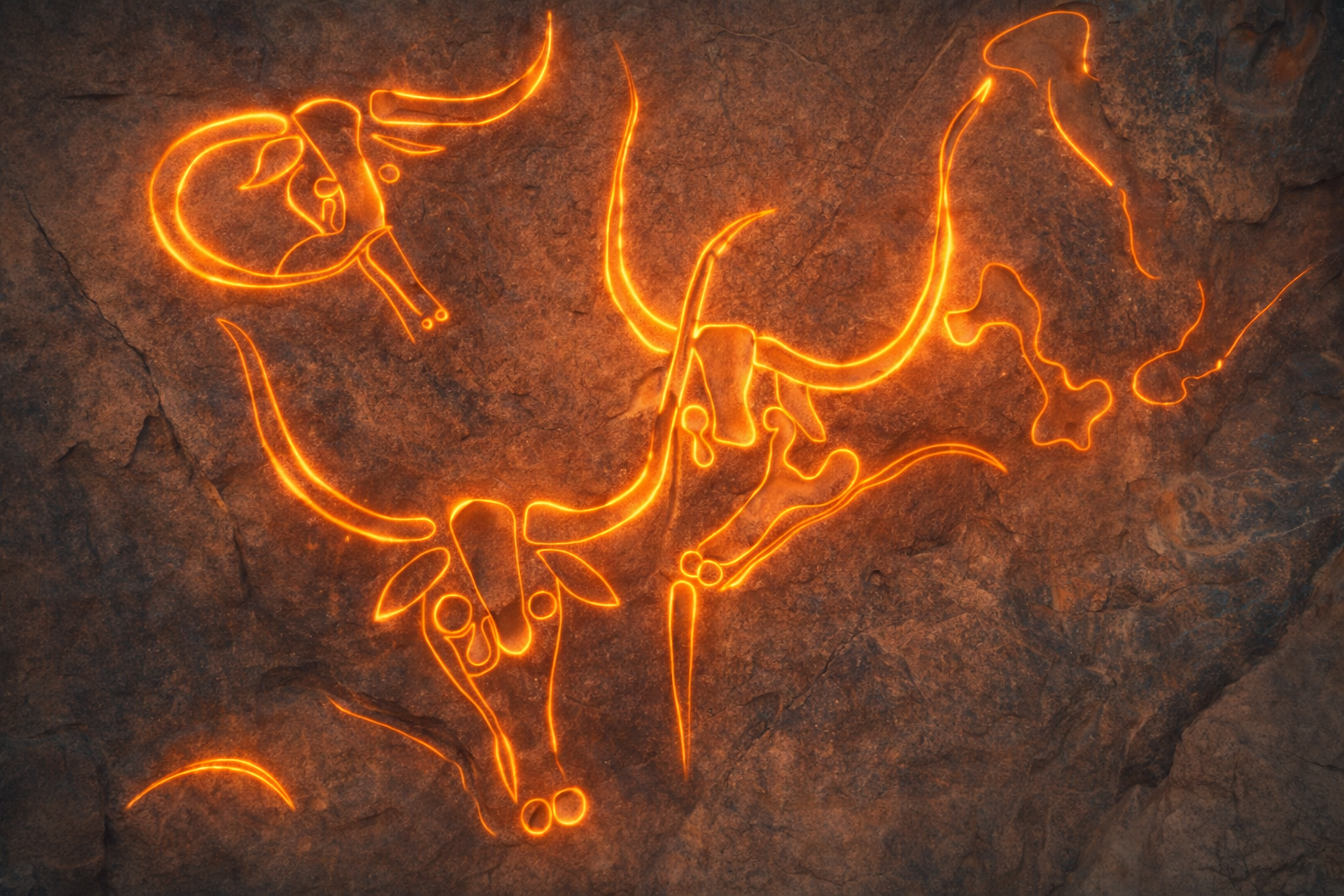 The Crying Cows engraving showcases finely carved lines that highlight the animals’ bodies and the distinctive tear-like markings beneath their eyes. The composition reflects remarkable artistic precision, capturing both expression and movement in the rock.